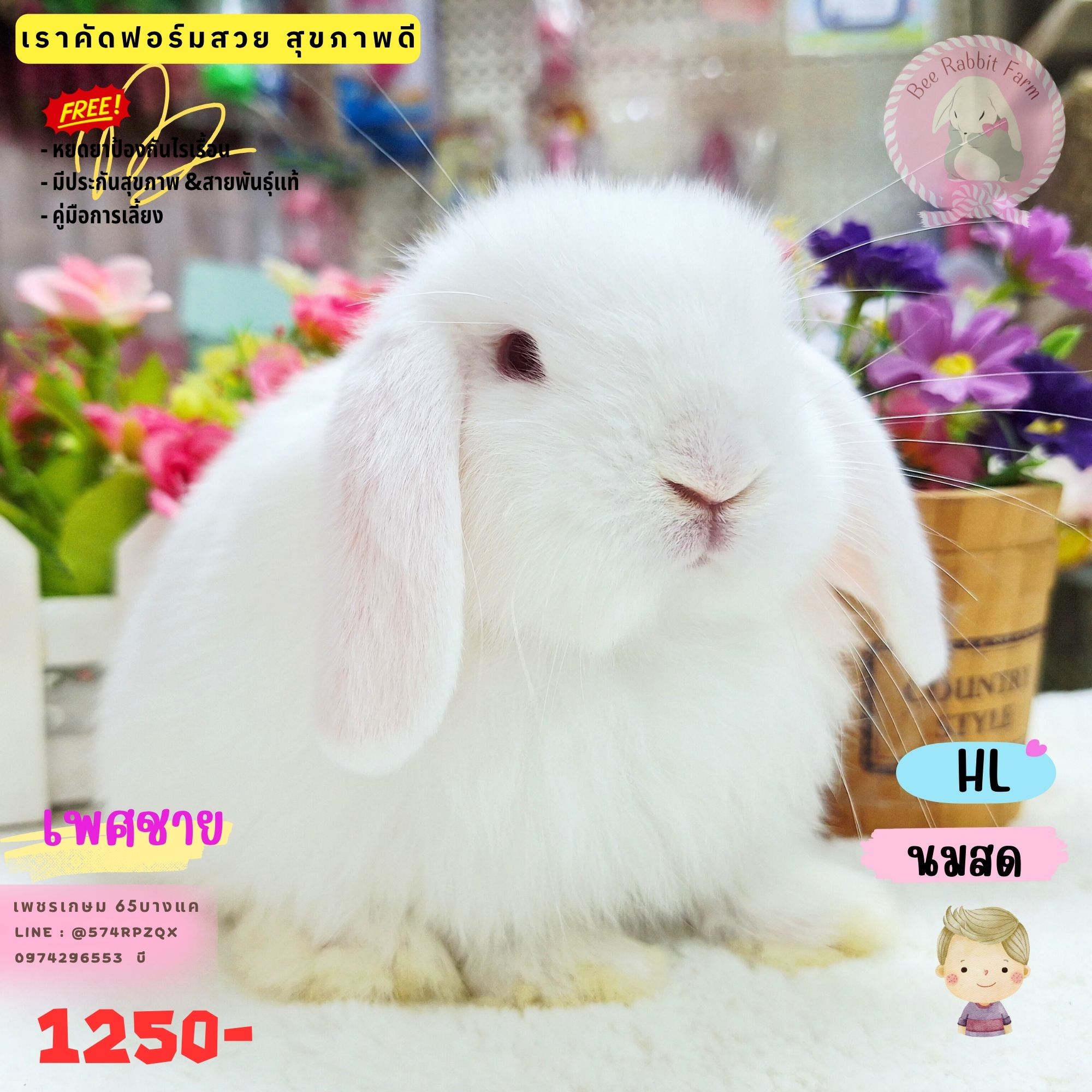 ฮอลแลนด์ลอปแท้ 100%. เพศชาย สีขาวนมสด
