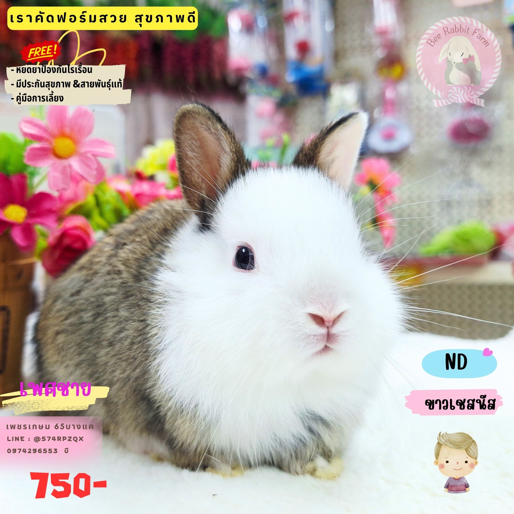 กระต่ายNDแท้100% เพศชาย สีขาวเชสนัท